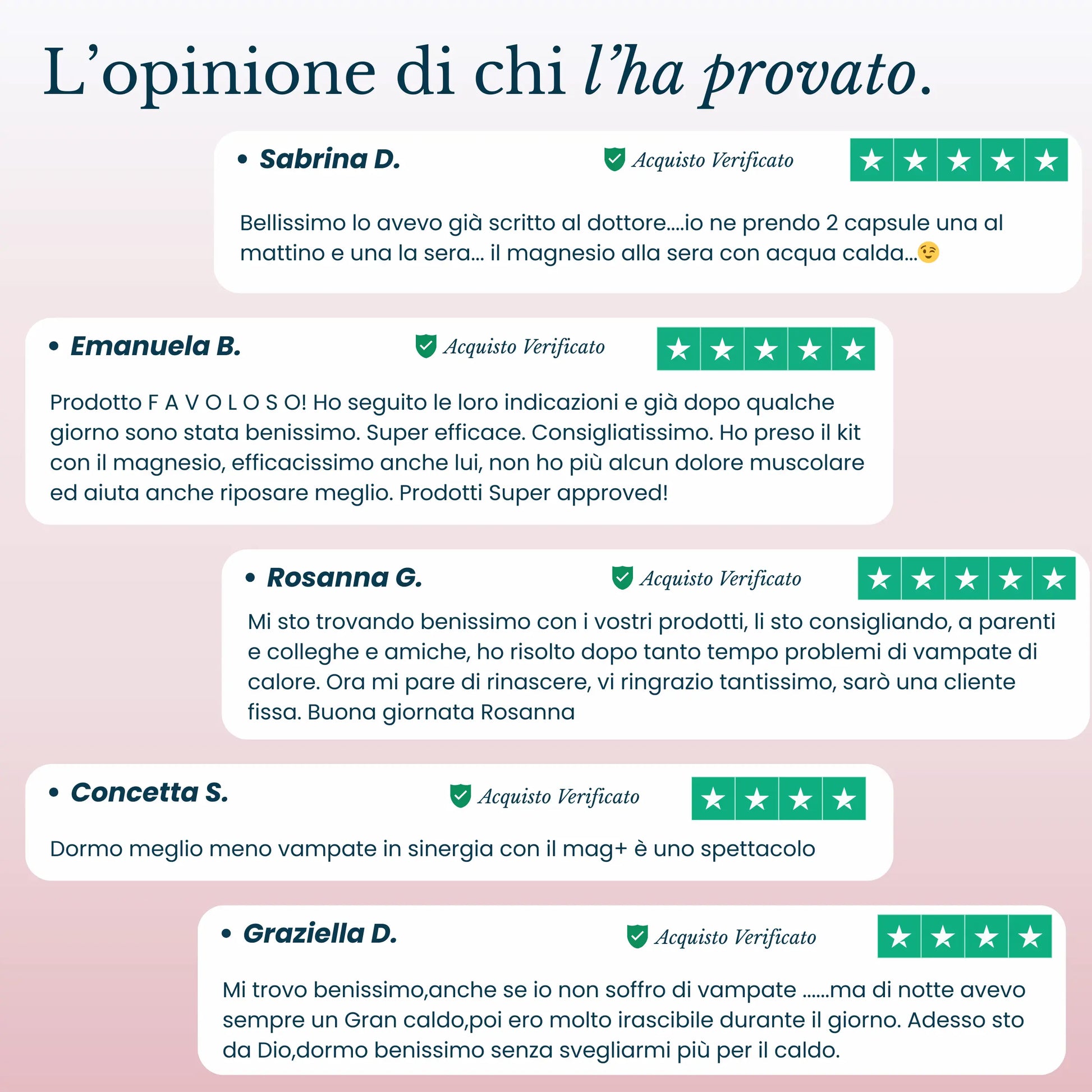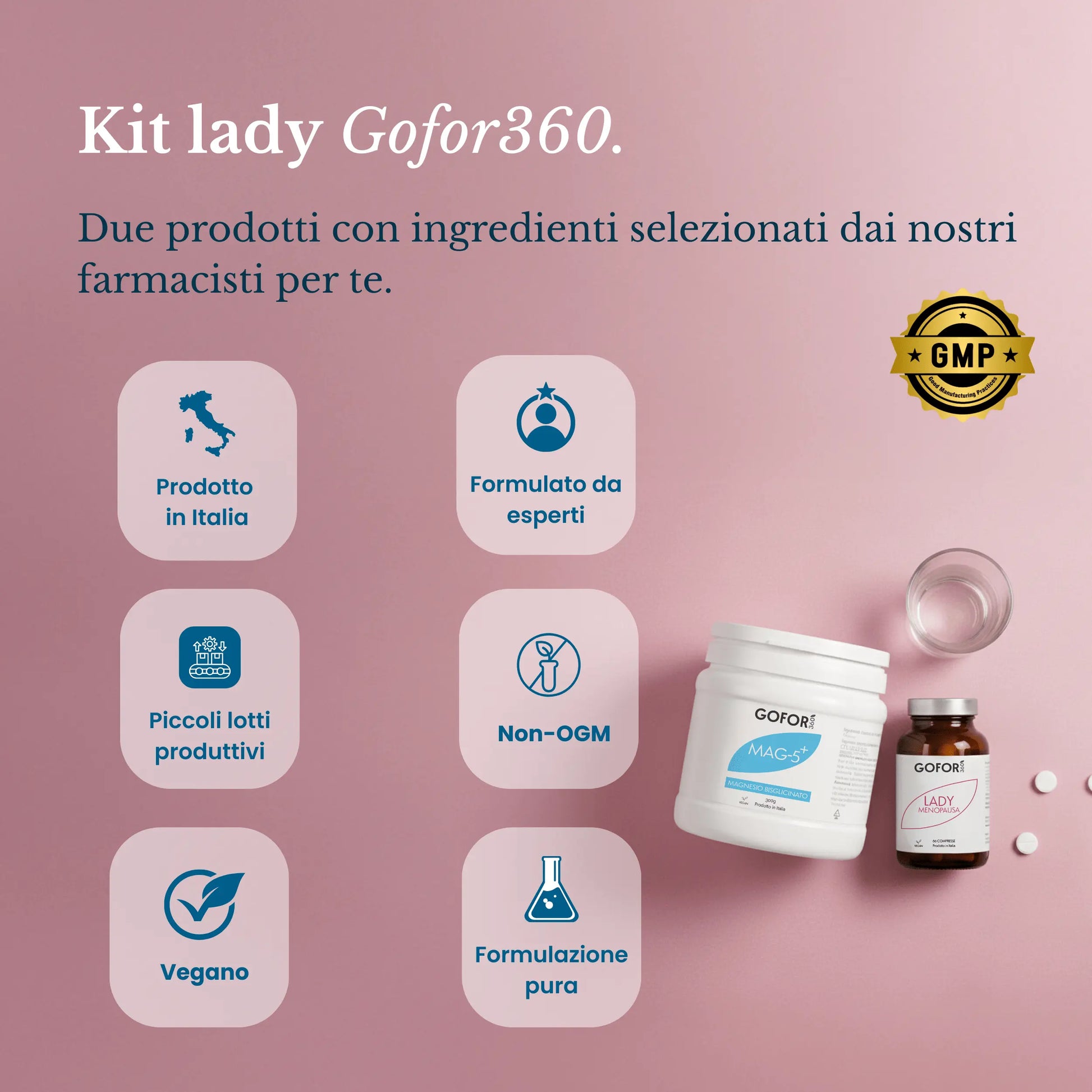 Ingredienti: Trifoglio Rosso e.s. (Trifolium Pratense tit. 20% isoflavoni, fiori), Equiseto e.s. (Equisetum Arvense tit. 2-3% silice, erba), Maca e.s. (Lepidium Meyeni 4:1), Tiamina, Colecalciferolo.